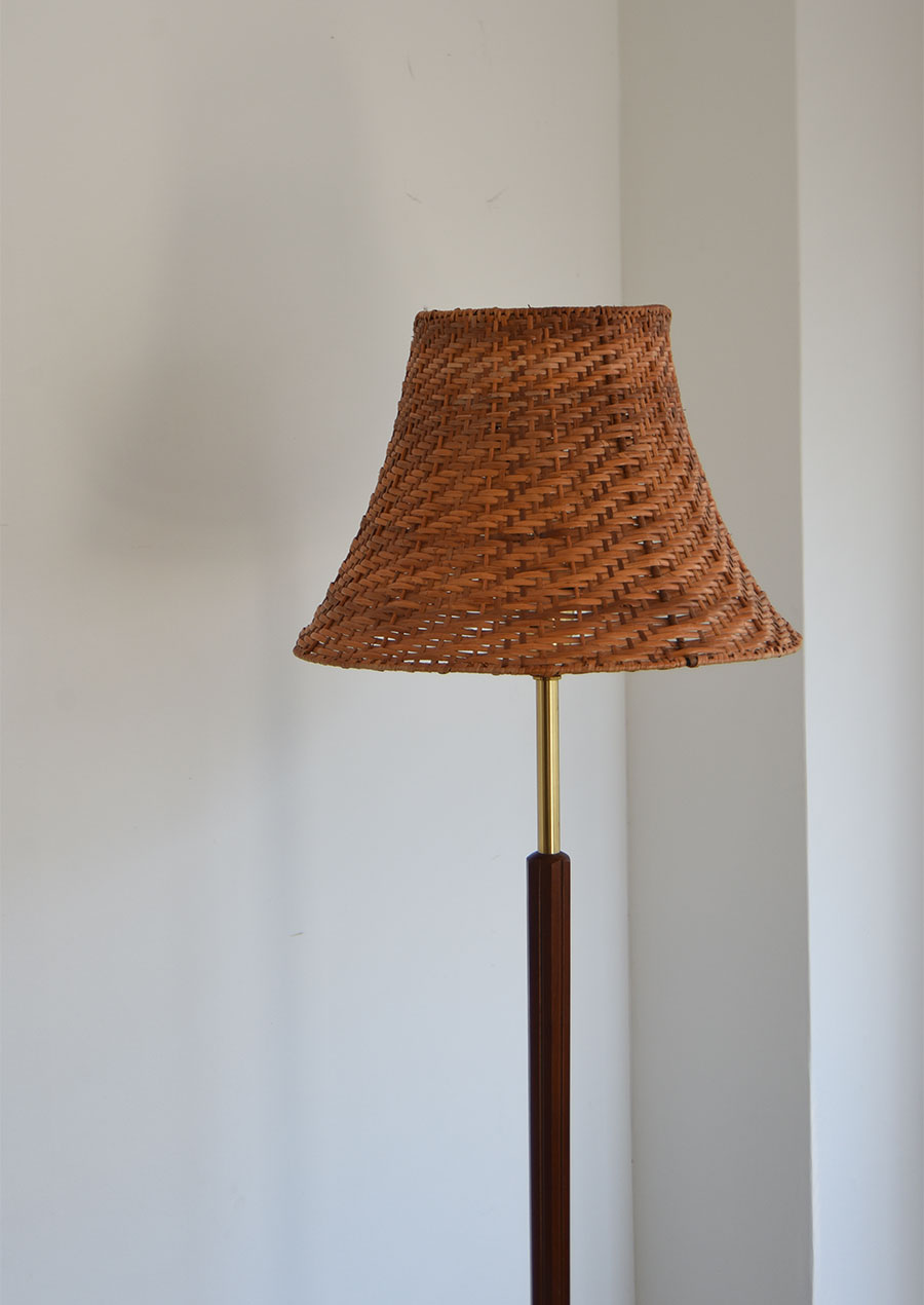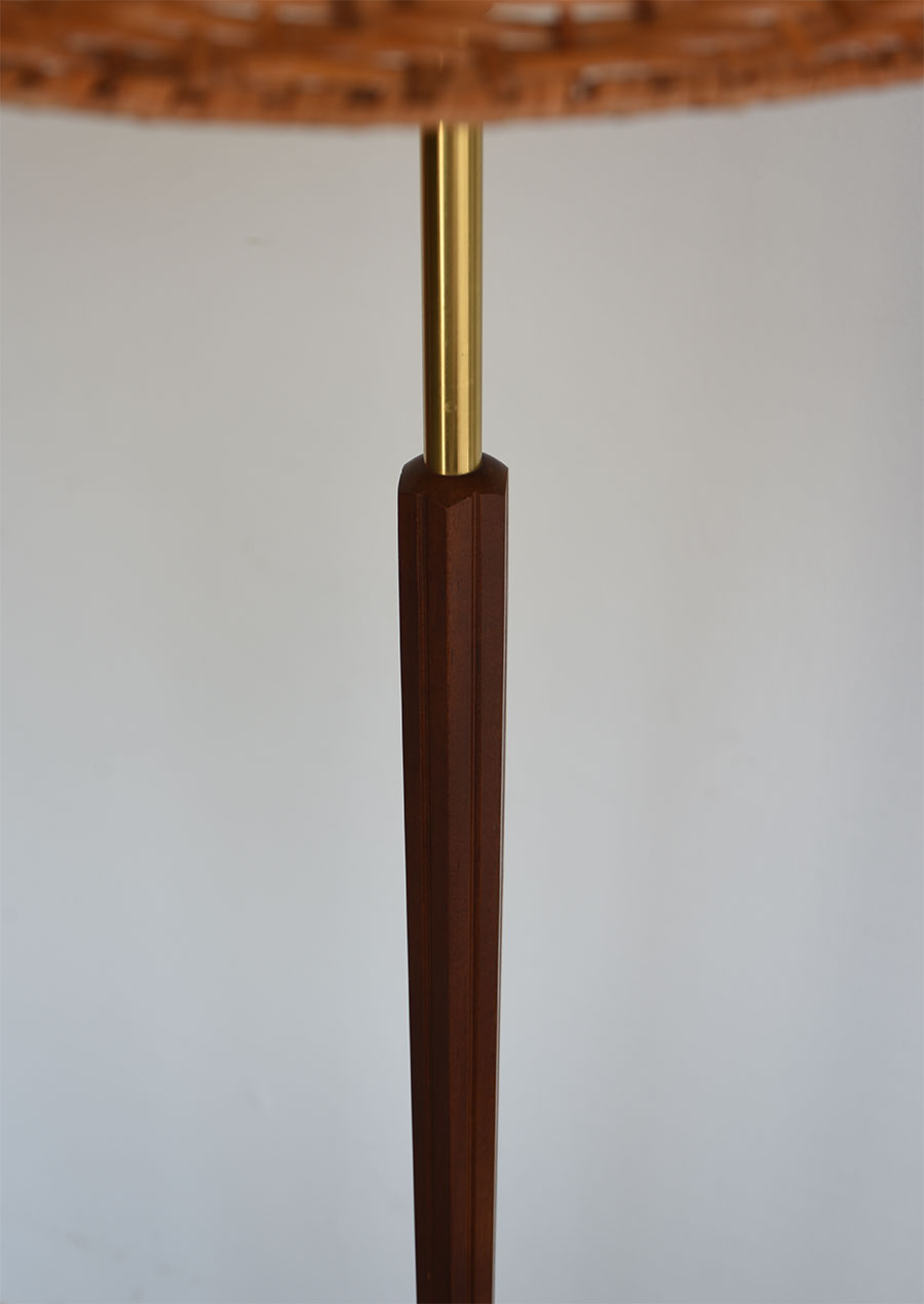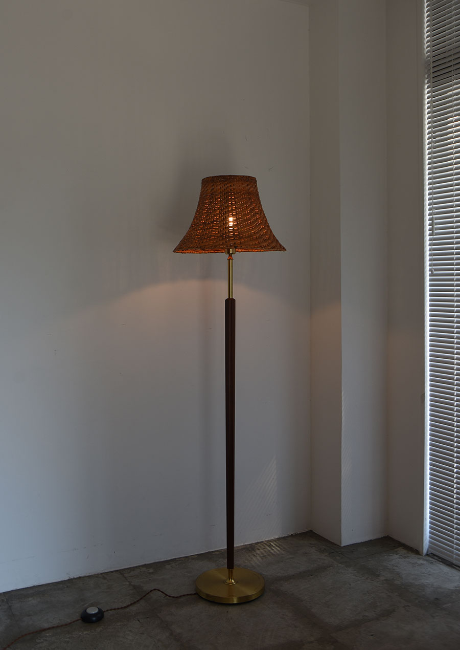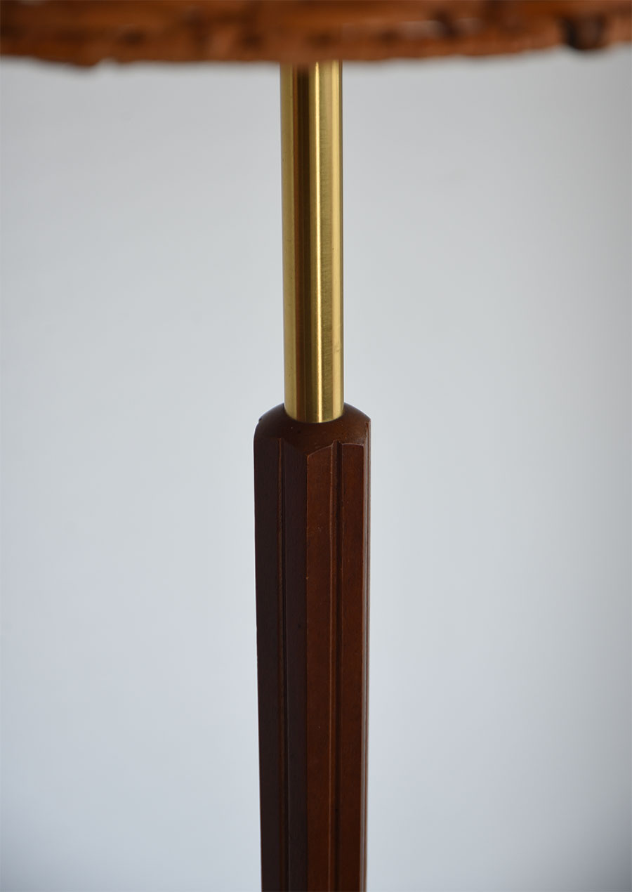 真鍮、マホガニー、ラタンの3種が見事に調和した珍しいフロアランプです。