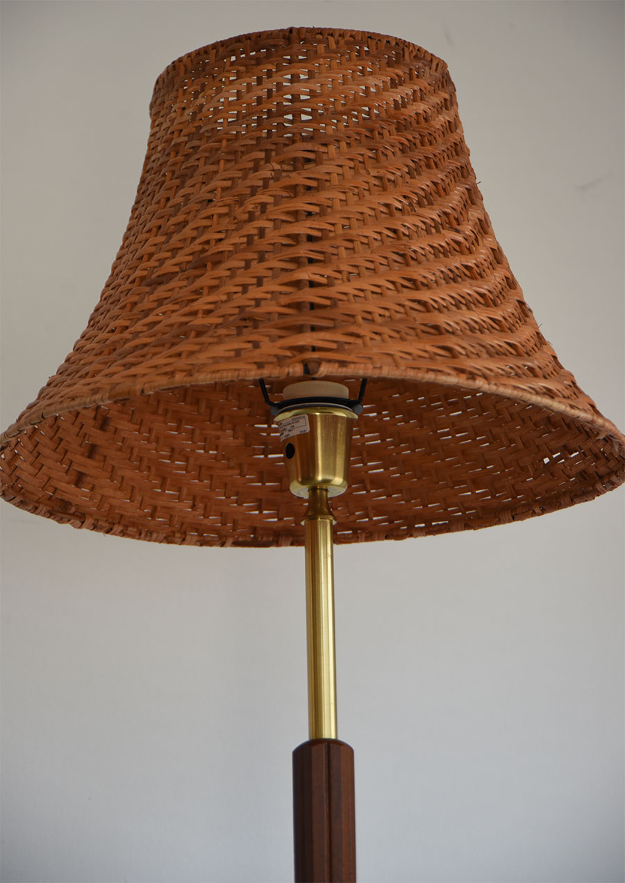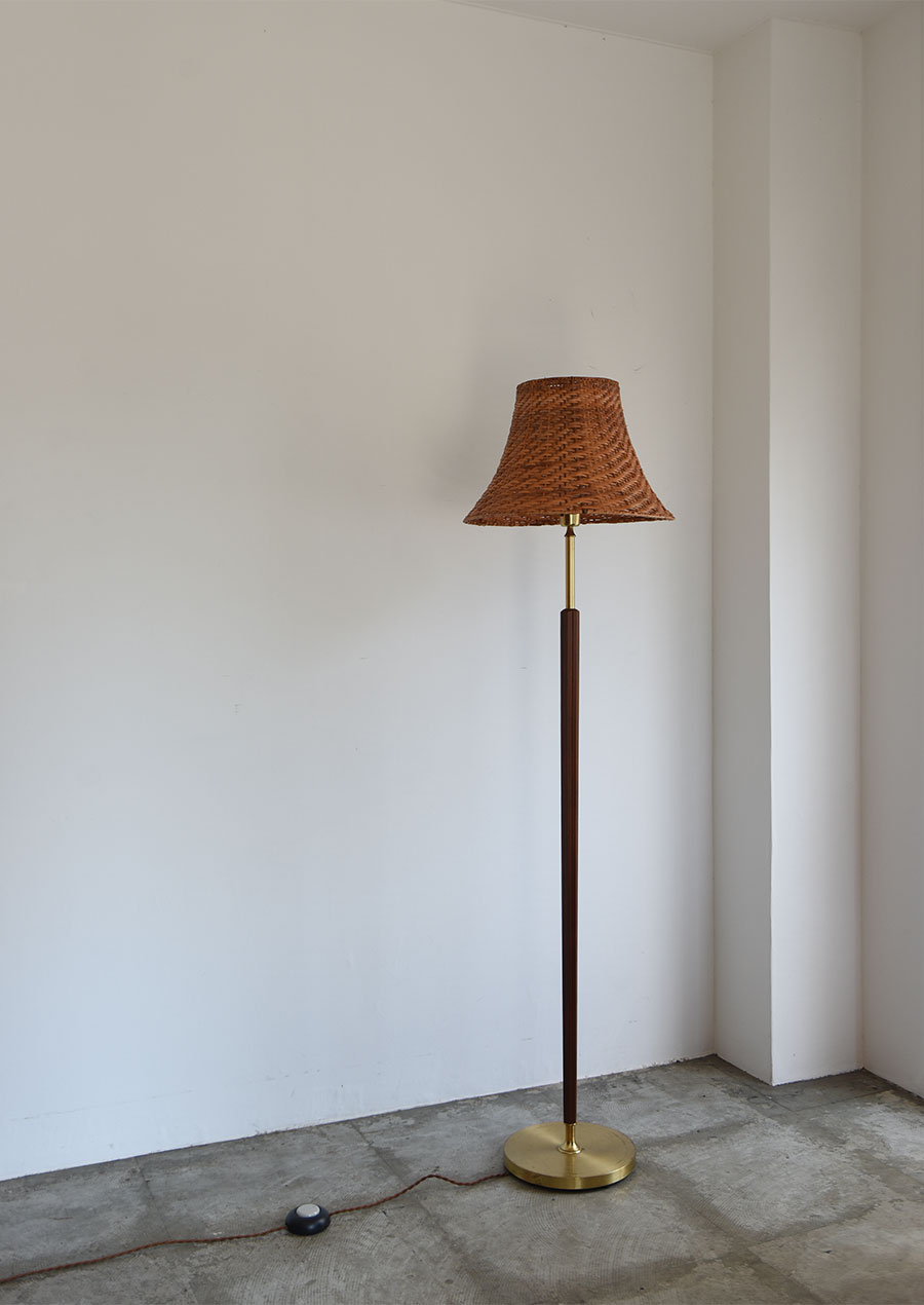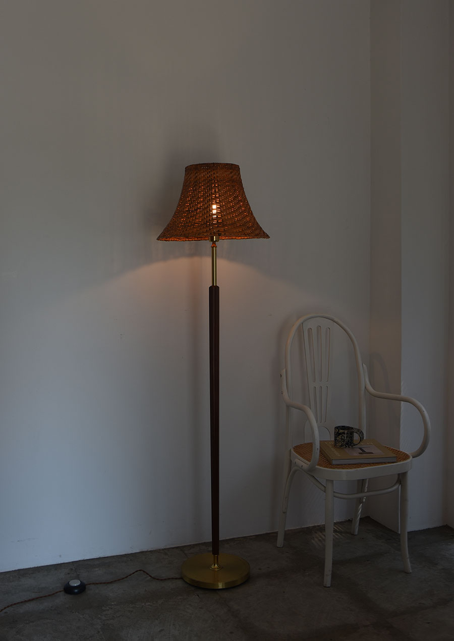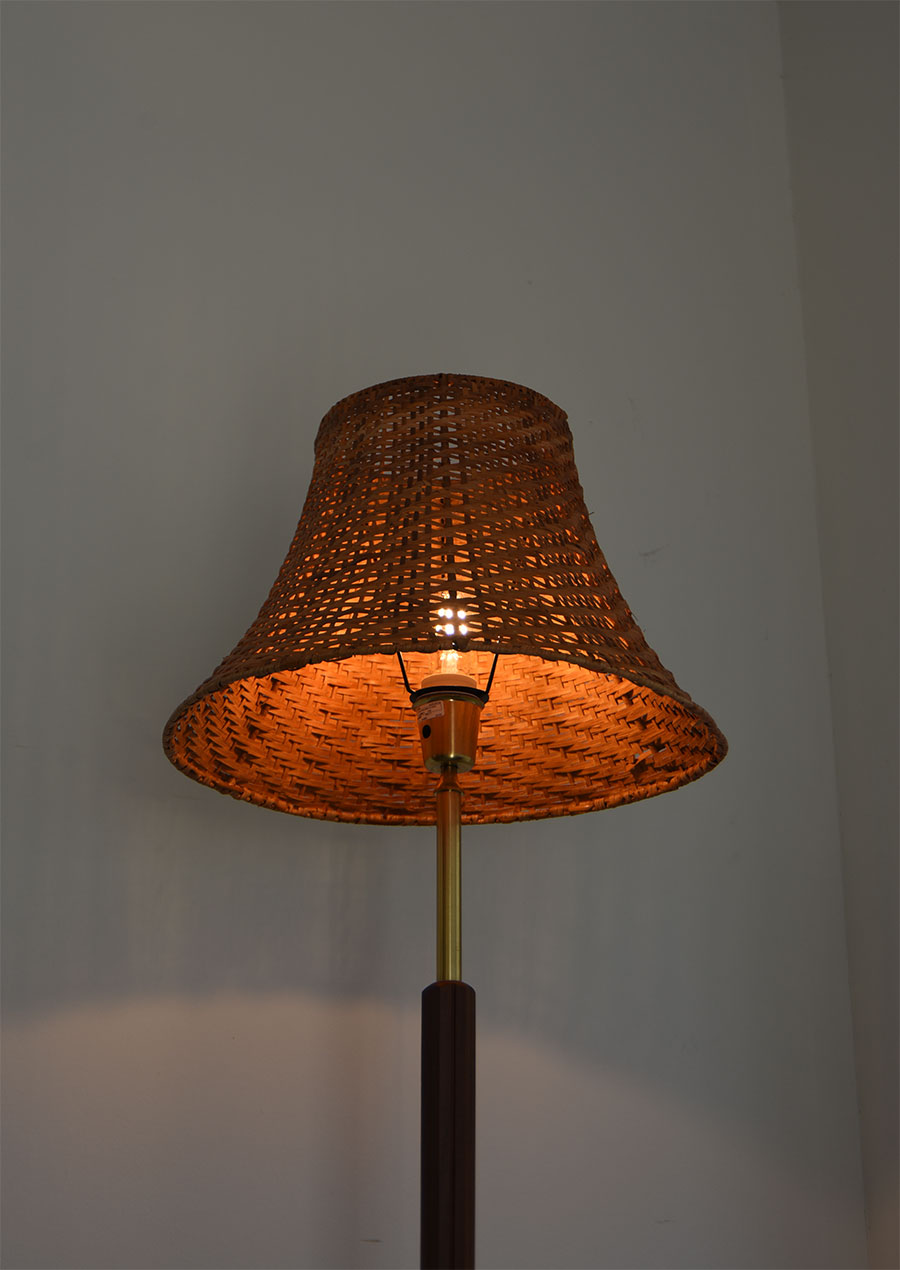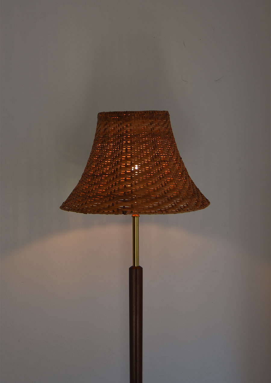 真鍮、マホガニー、ラタンの3種が見事に調和した珍しいフロアランプです。