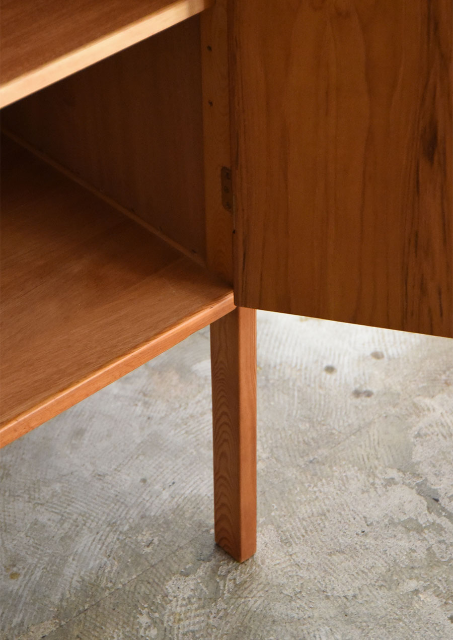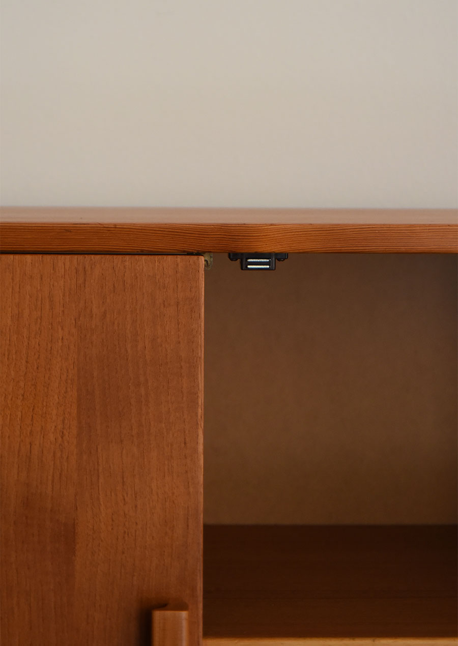 天板や扉などの面材にはチーク材、脚や取手に無垢のパイン材を使用しています。