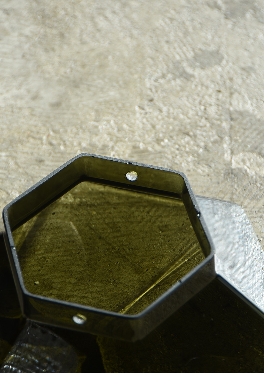 目を引く六角形のデザインと素材の美しさはもちろんですが、