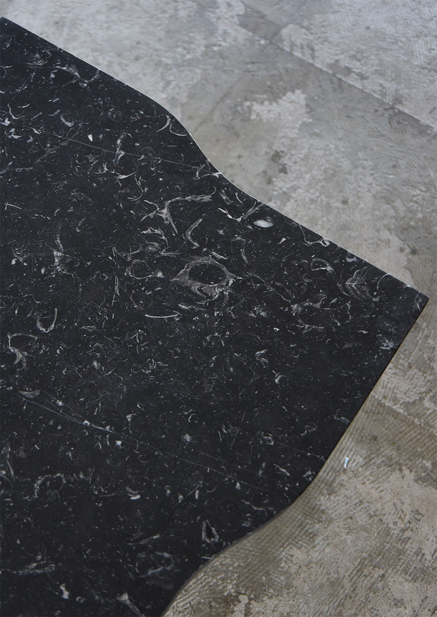 スクエアにするとゴツくなってしまいがちな黒大理石が素敵に仕上がっています。
