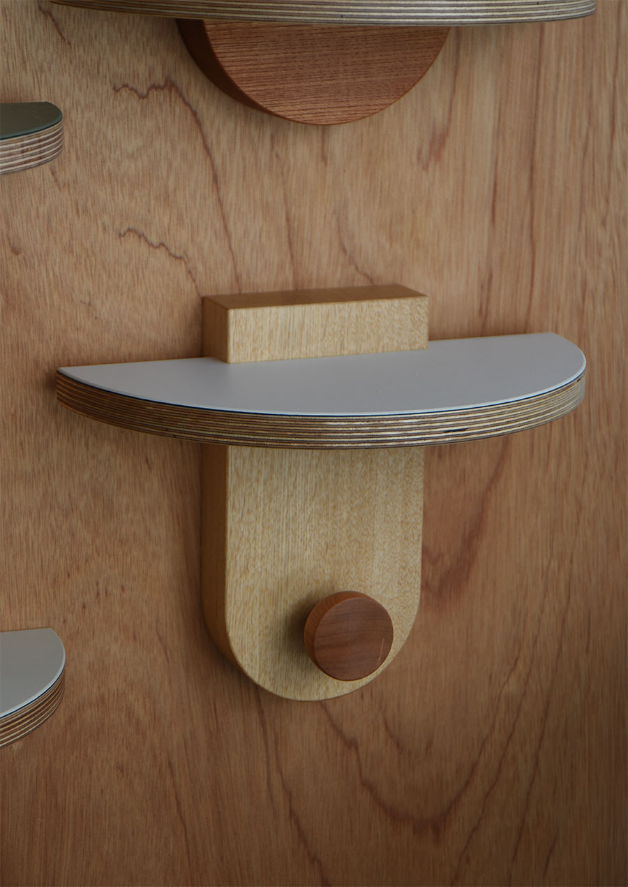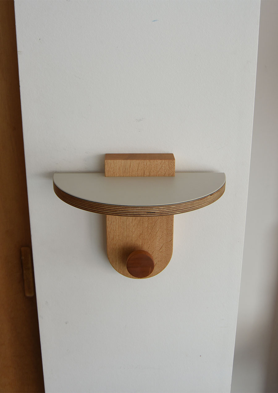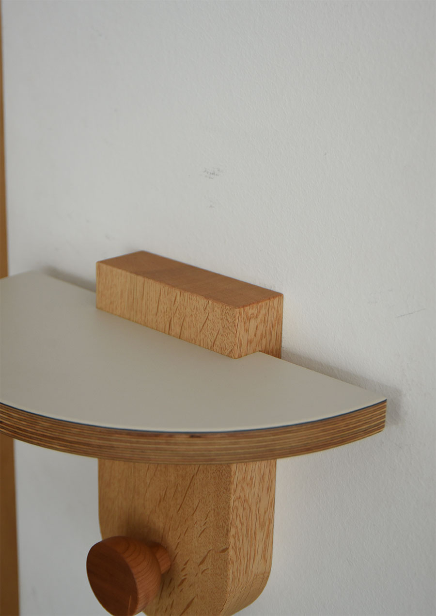 Linoleum Mini Wall Shelf in White Oak / Hook