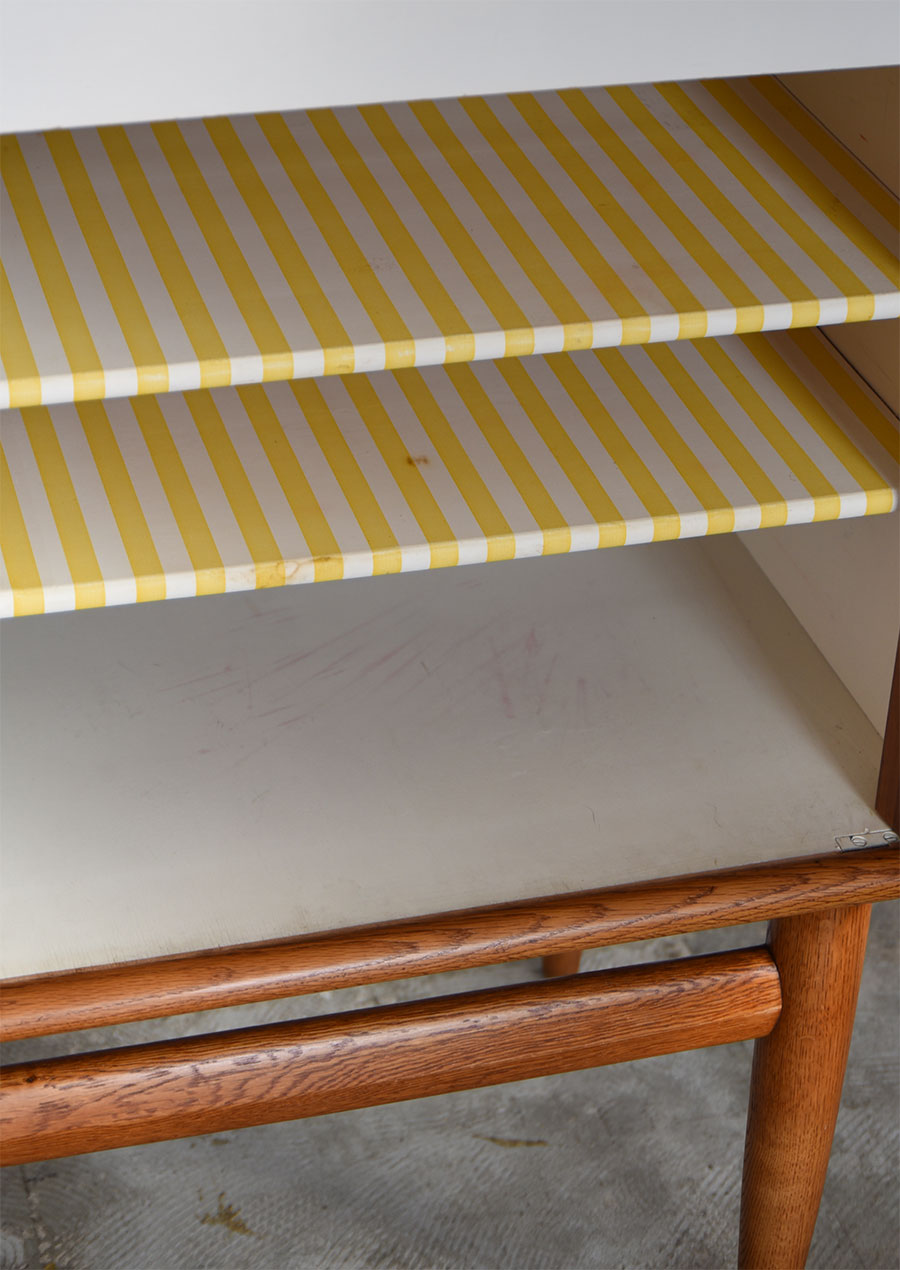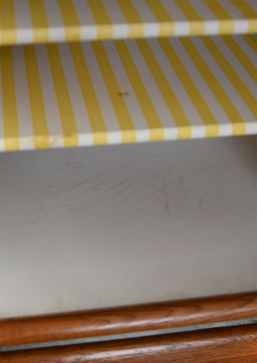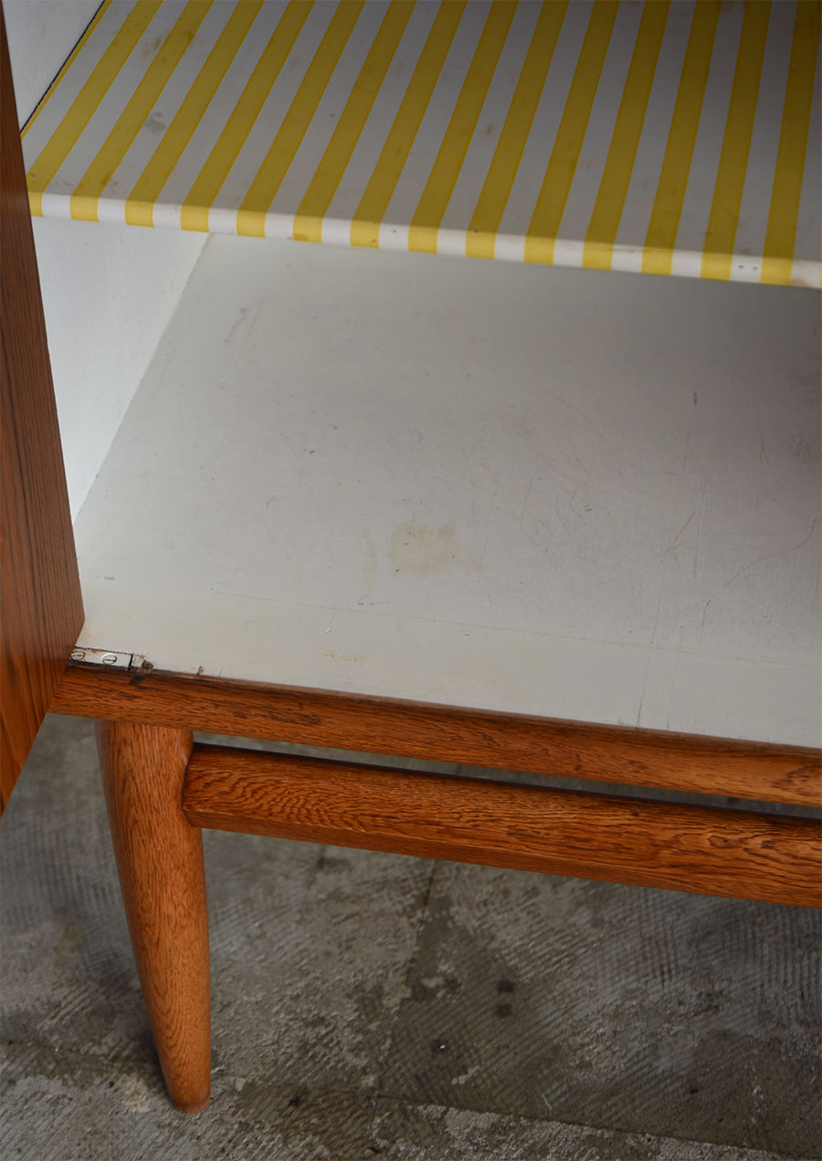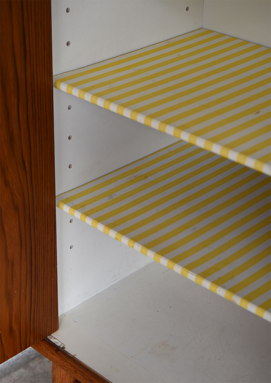 棚板はオリジナルの仕様で撥水性のあるストライプのシートが貼られています。