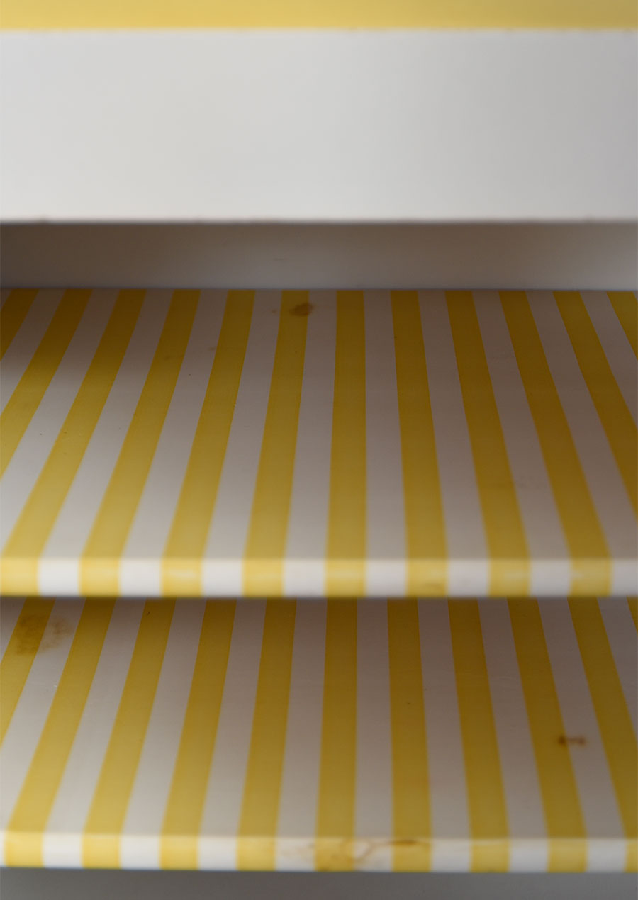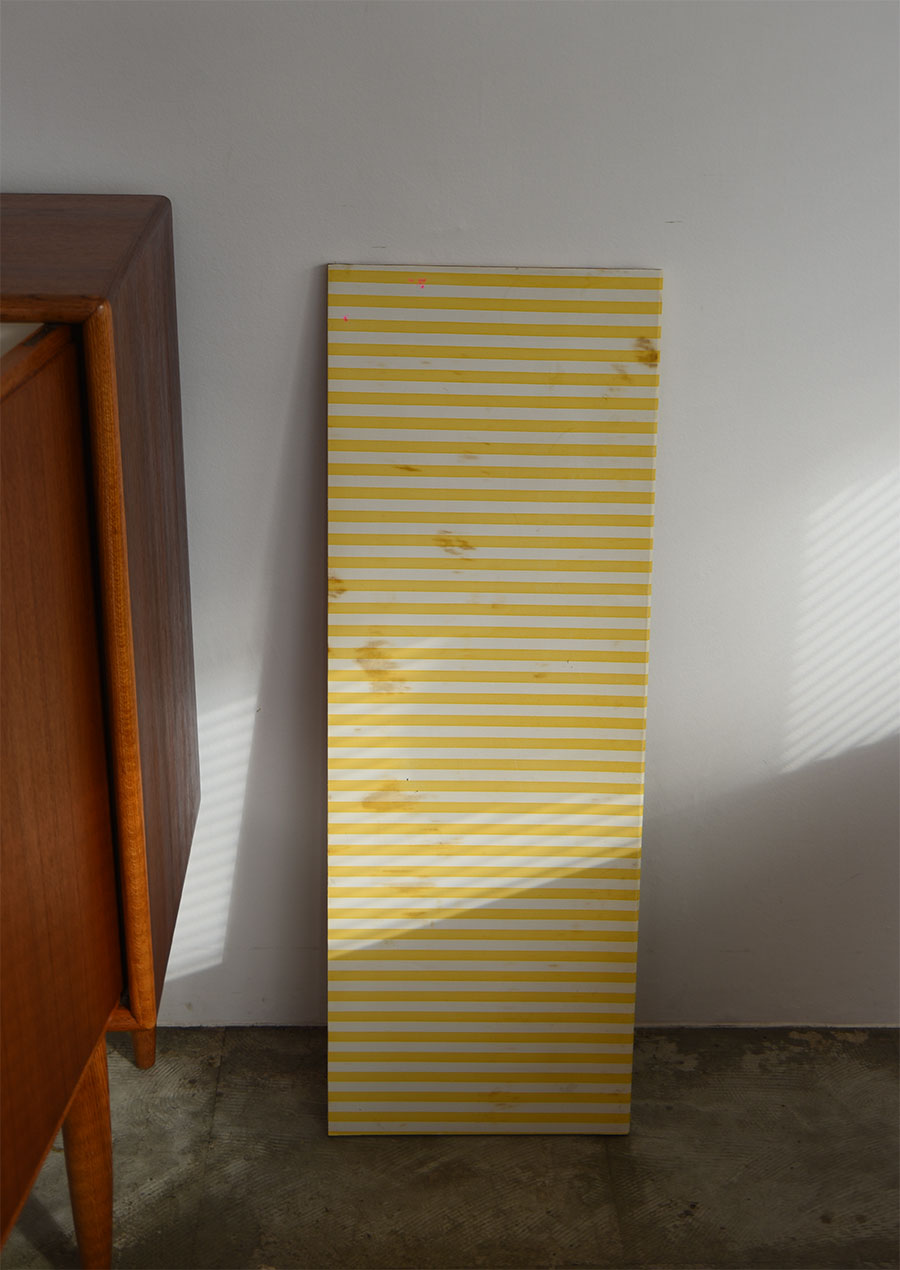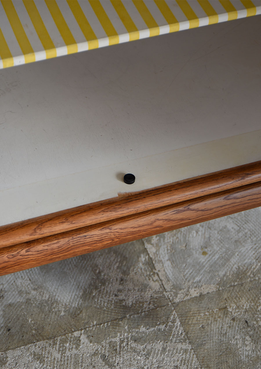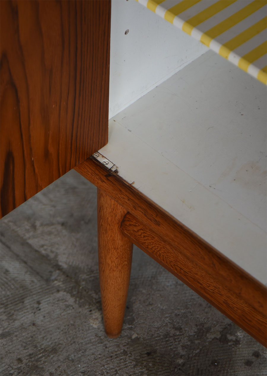 棚板はオリジナルの仕様で撥水性のあるストライプのシートが貼られています。