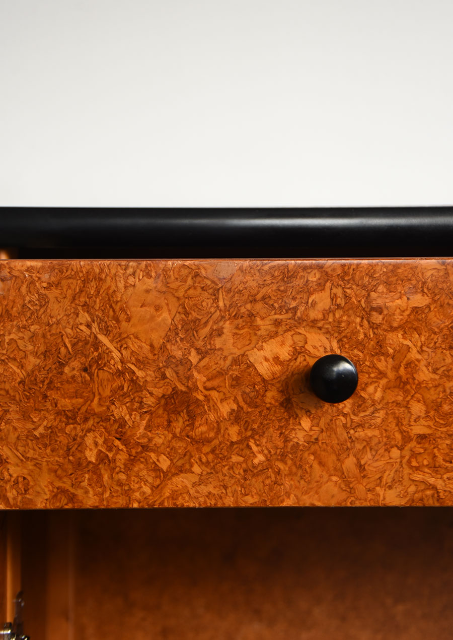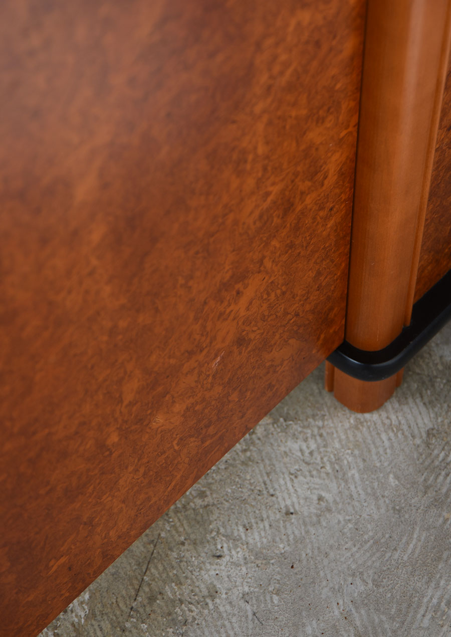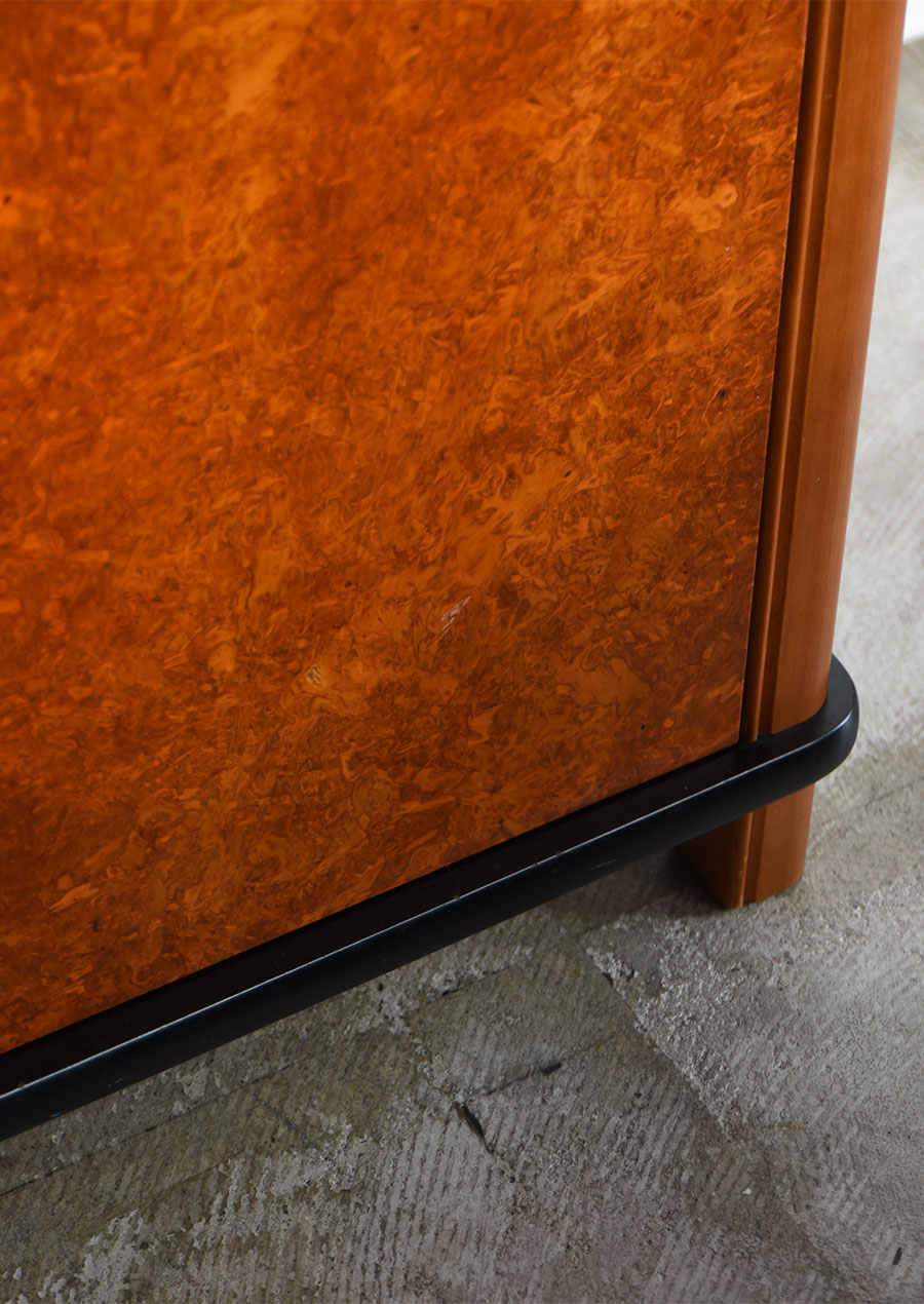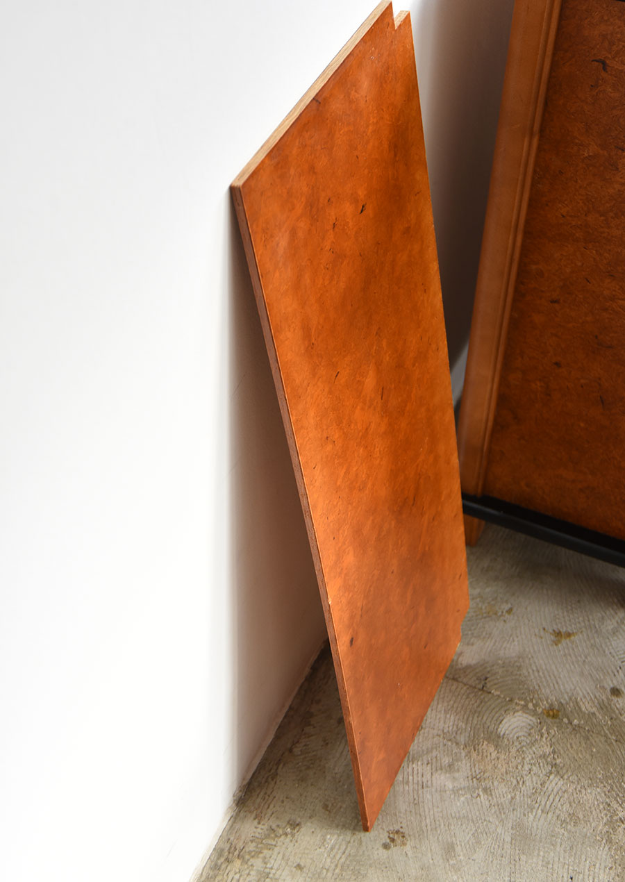 このキャビネットでは表面の顔として使われ、木片のランダムな模様が個性的です。