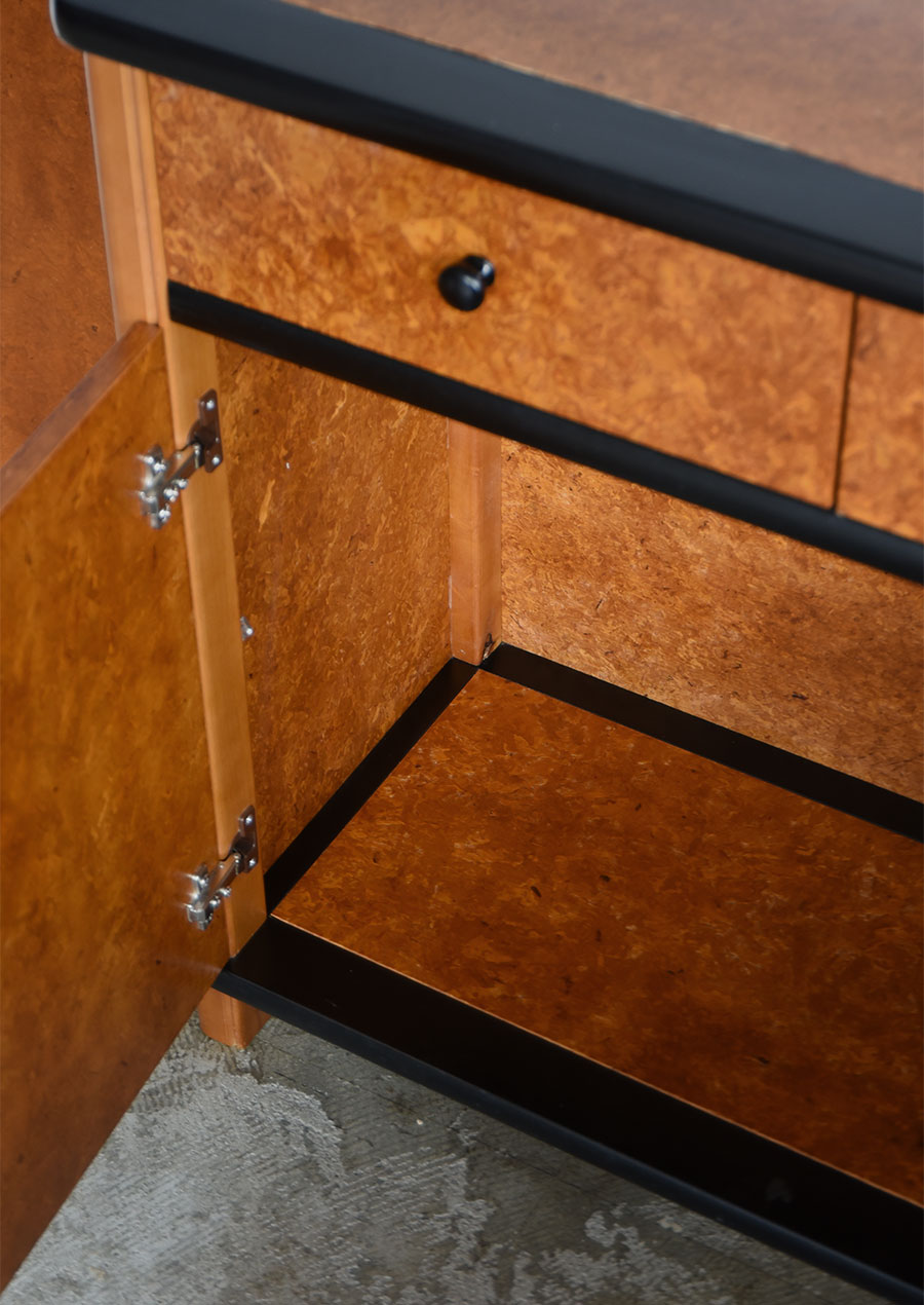 ・引き出しと扉の前板にパーティクルボードの欠けや小さな亀裂などがあります。