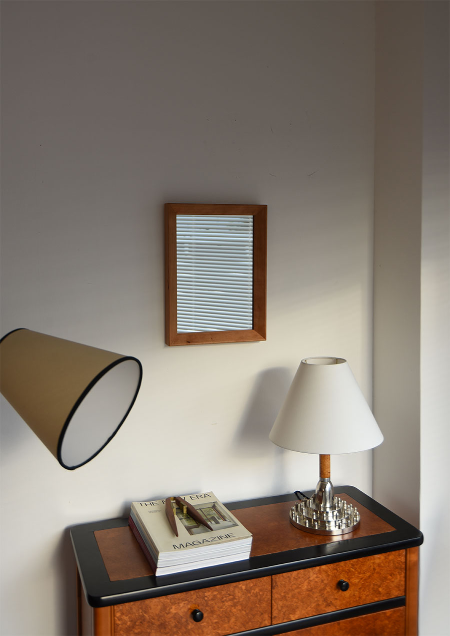 端材で製作したihållandeオリジナルの小さな壁掛けミラーです。