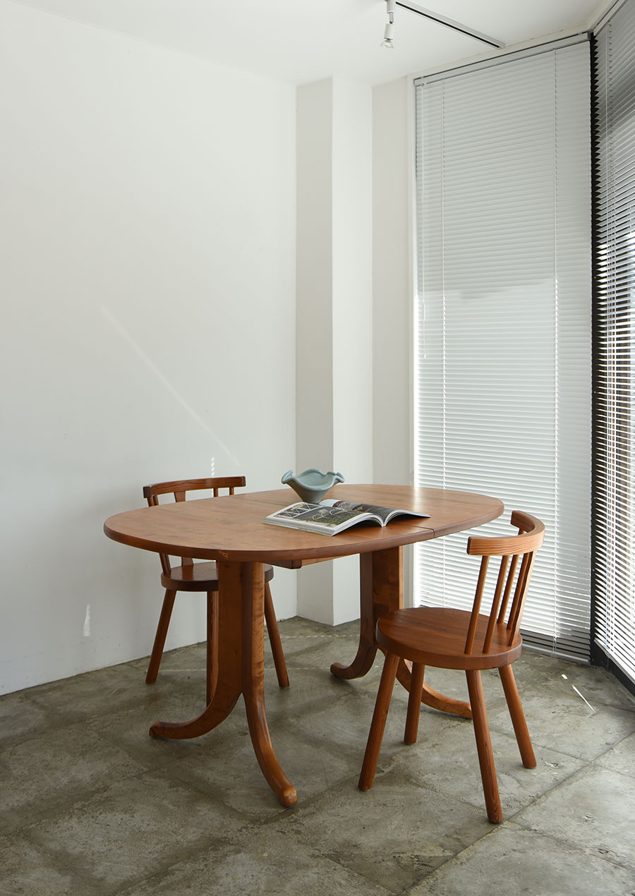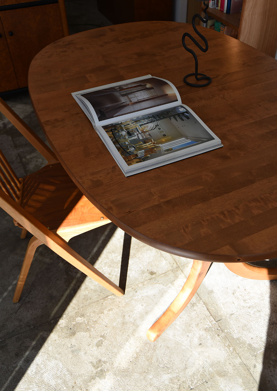 スウェーデンで買い付けた楕円形のダイニングテーブル。