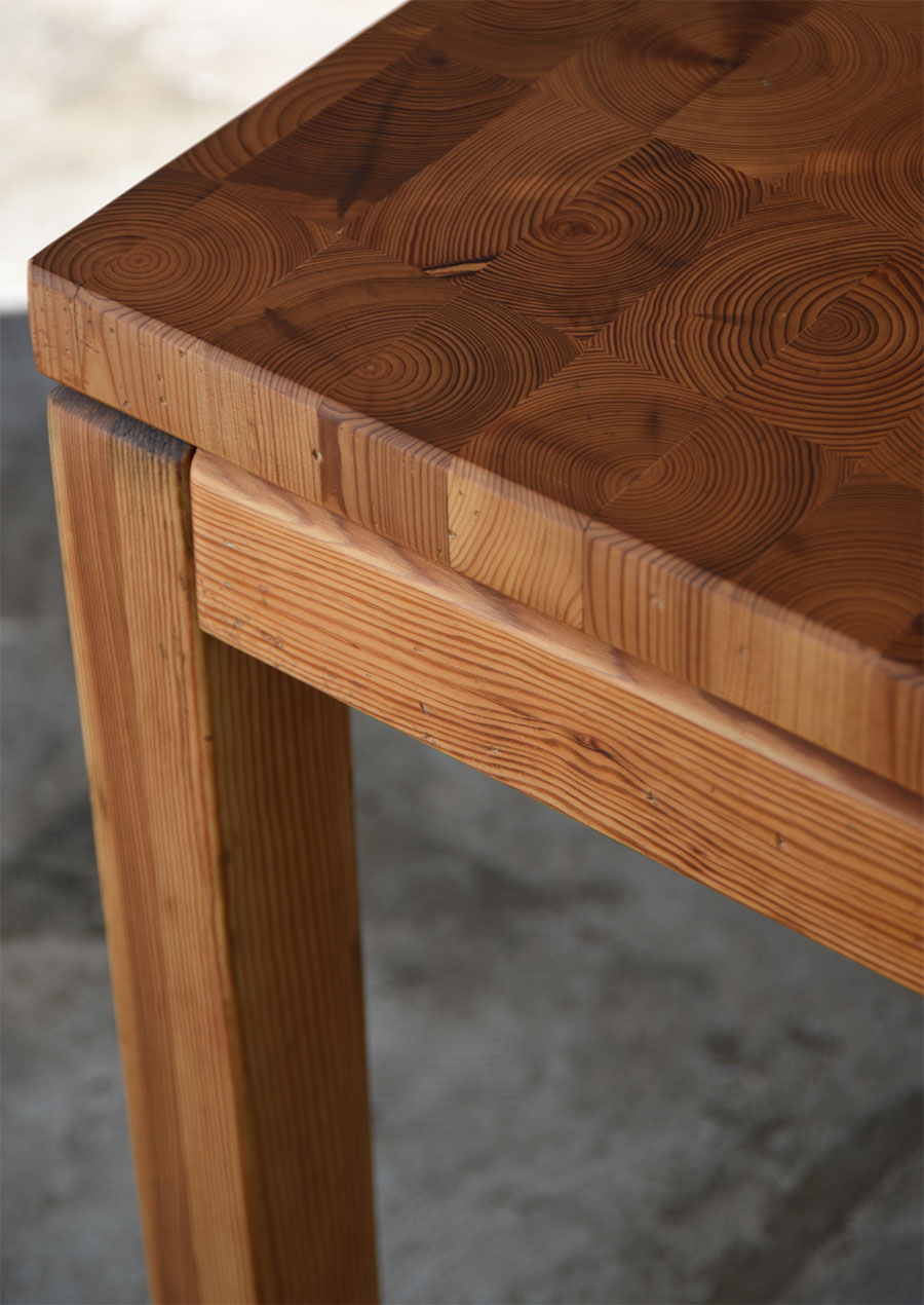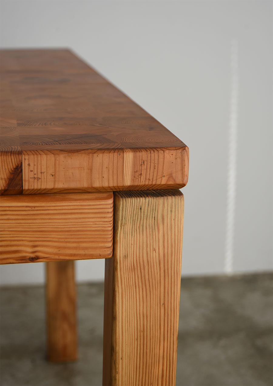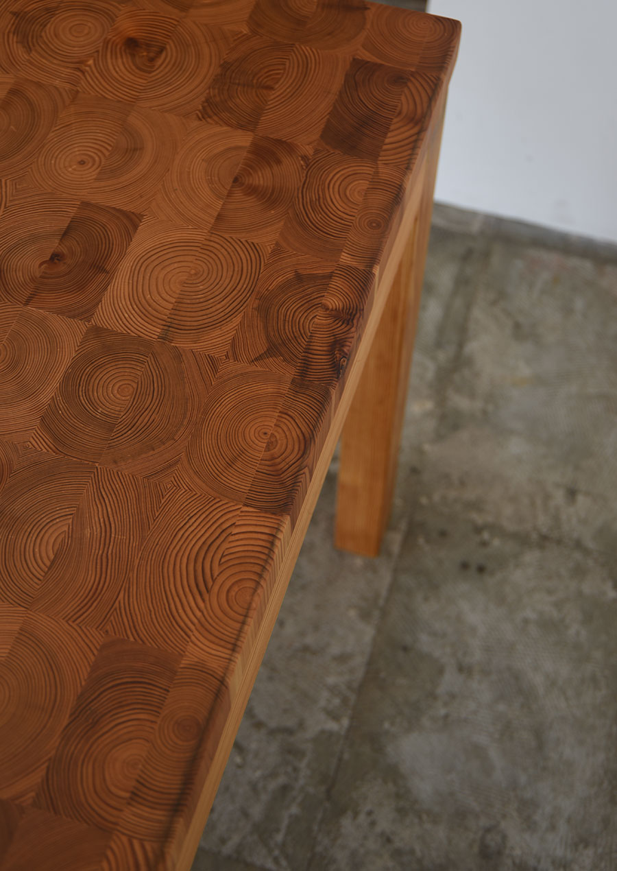 天板は彼の作品の特徴でもあるパイン材の寄木で作られています。