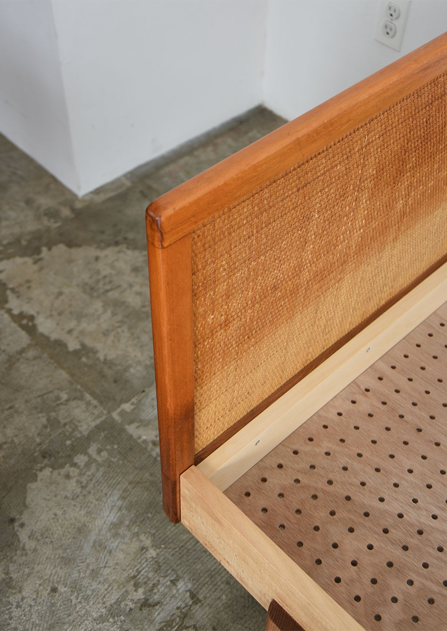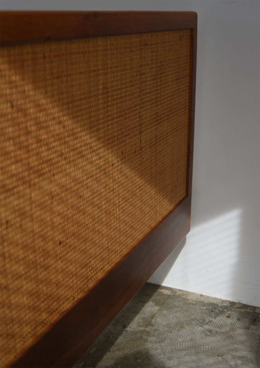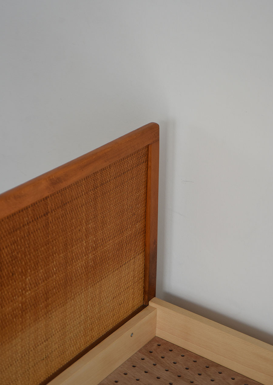今回はスウェーデンで入手した1960年代頃の籐張りのヘッドボードを使った作品です。