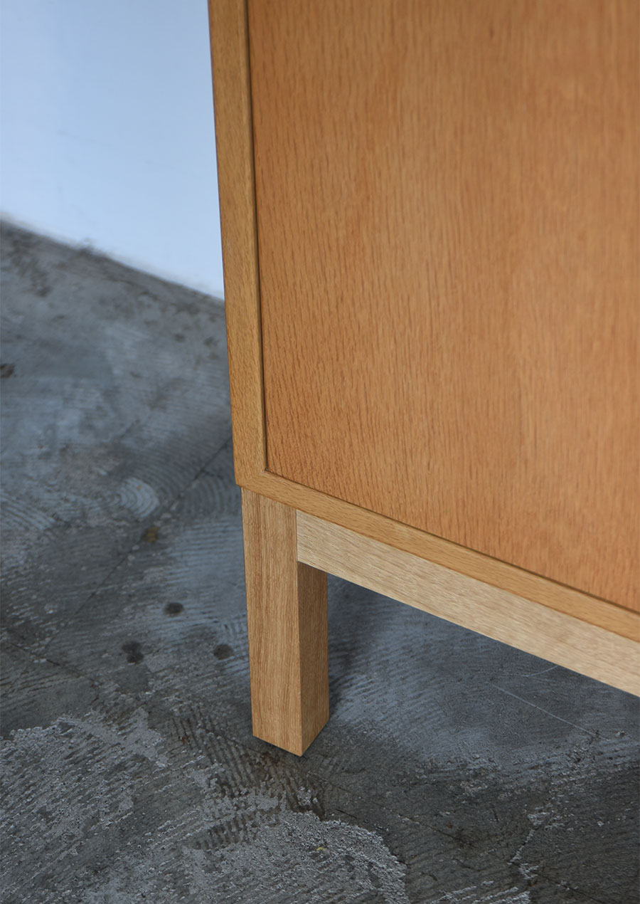 脚は日本で製作したイホランデのオリジナルで、本体と同じオーク材を使用しました。