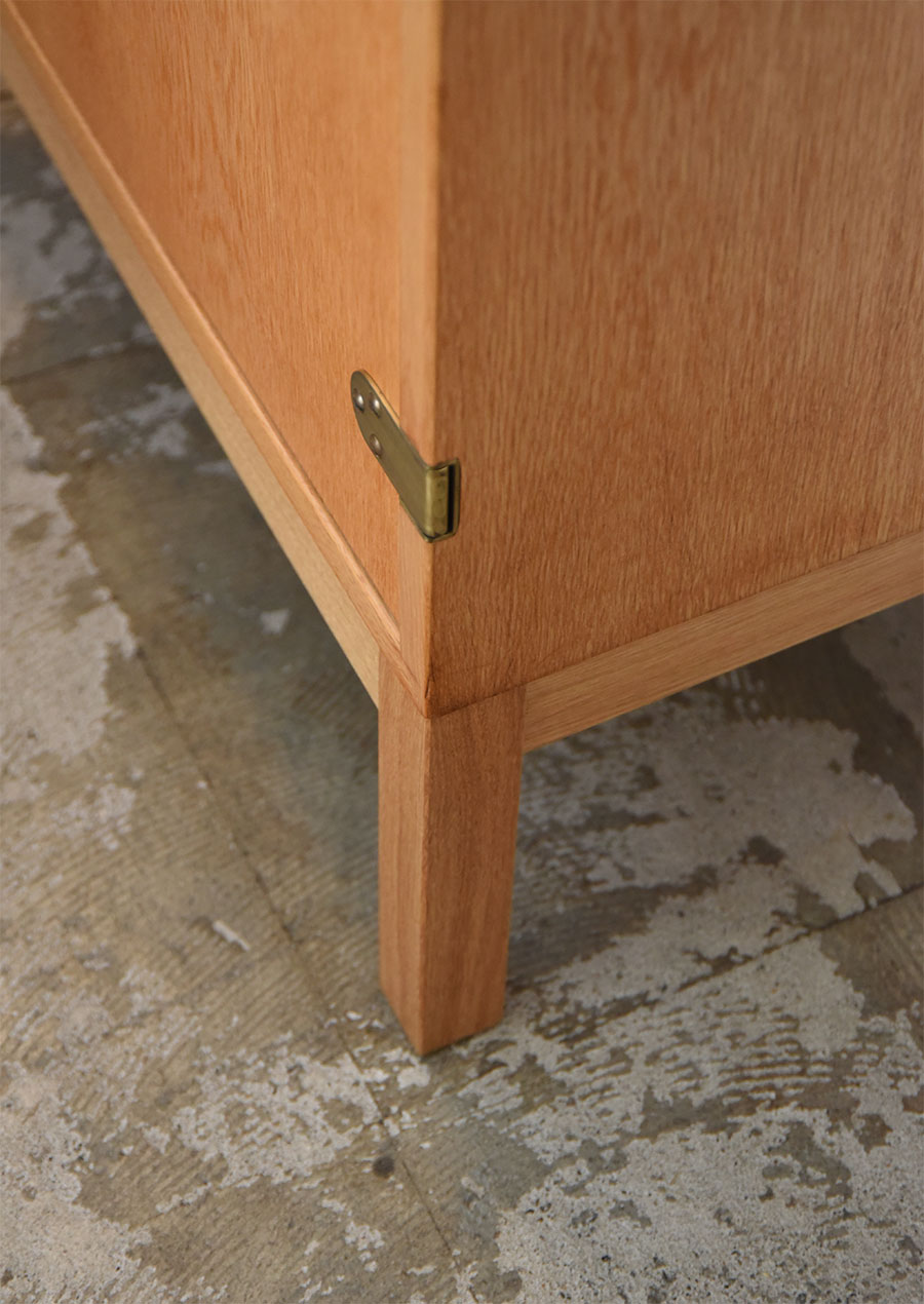 ØRESUND定番の扉のつまみや大きめの真鍮蝶番がシンプルなデザインのアクセントになっています。