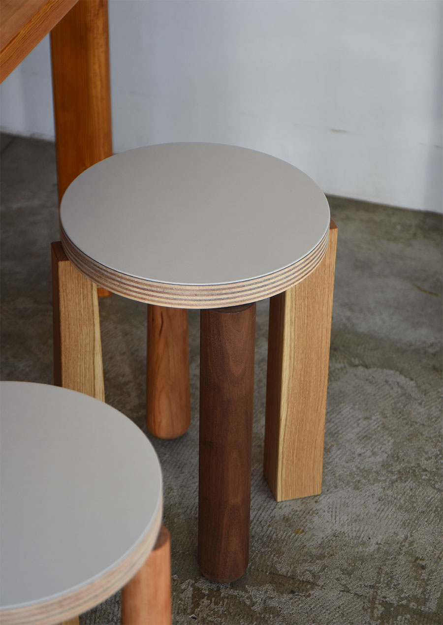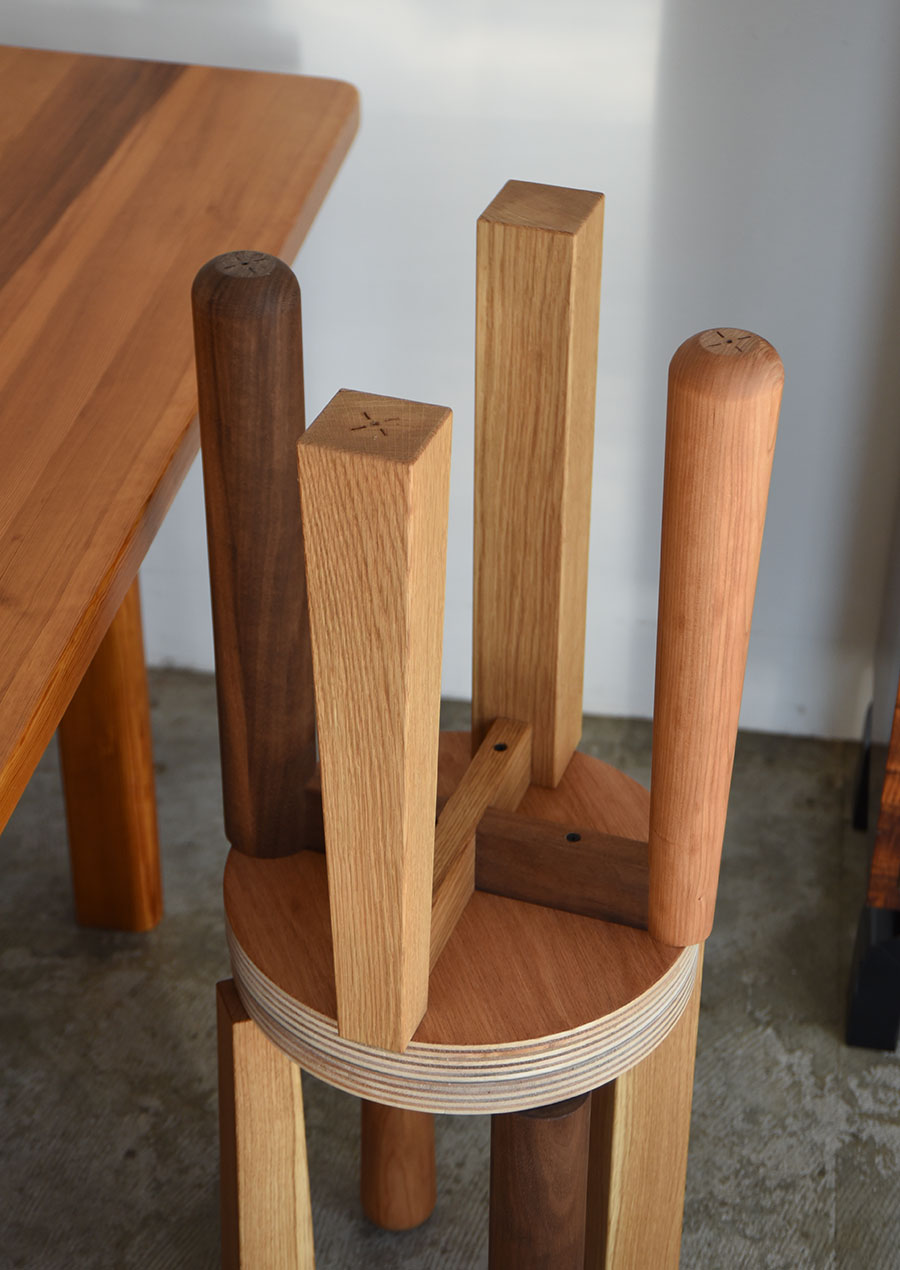 スツールは、以前イホランデの5周年に1脚だけ製作した⇨特別なデザインのスツールをアレンジしたものです。
